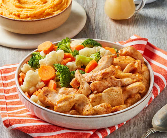 Paprika Chicken with Vegetables and Mashed Sweet Potatoes