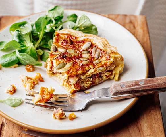 Crumble de carottes rôties aux lardons fumés et éclats de pistache